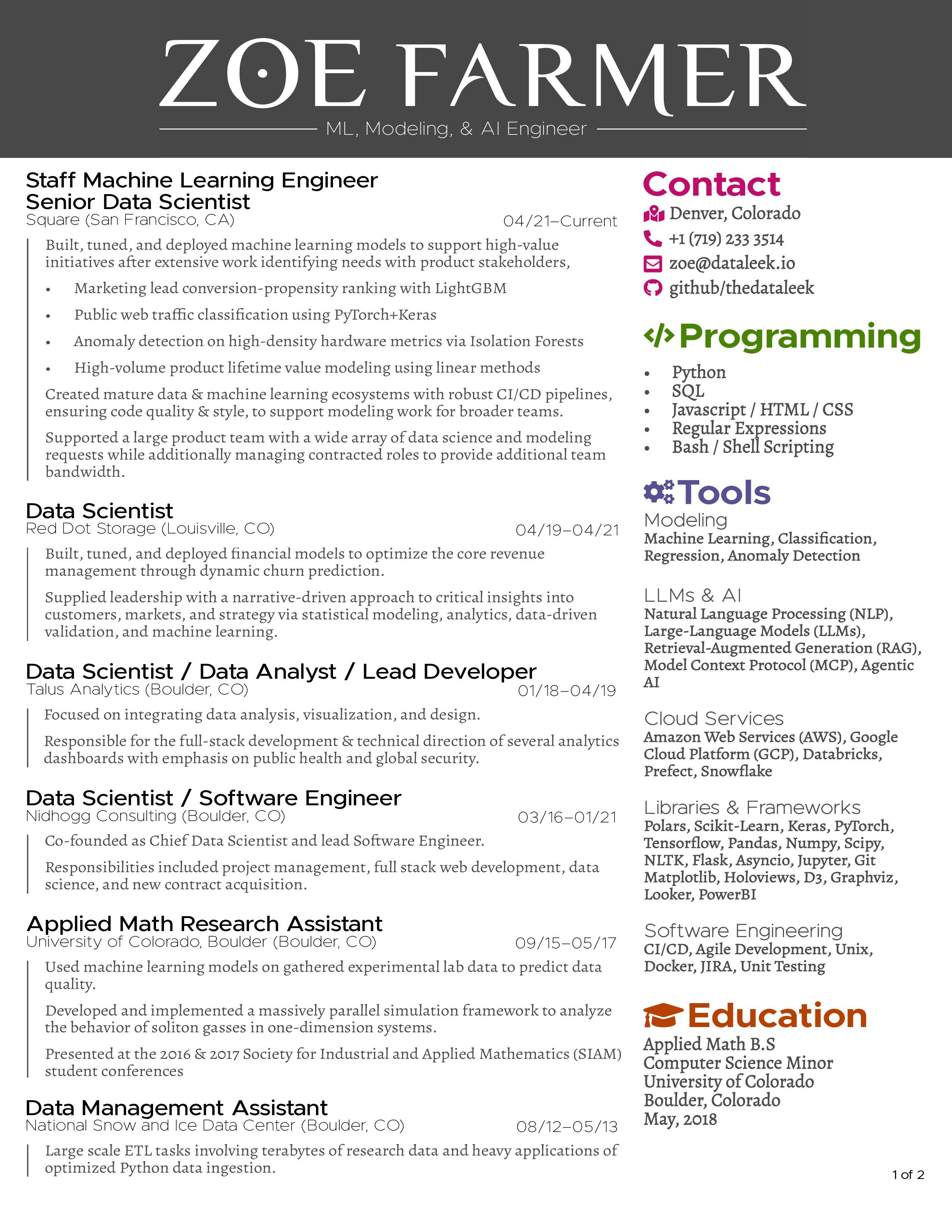I am an innovative and versatile Machine Learning Engineer with deep expertise in production-scale Python, data engineering, and ML architecture. I specialize in turning complex, ambiguous challenges into elegant, high-impact solutions for clients and end users. I thrive on building scalable systems and leading collaborative projects that deliver real business value and technical excellence.